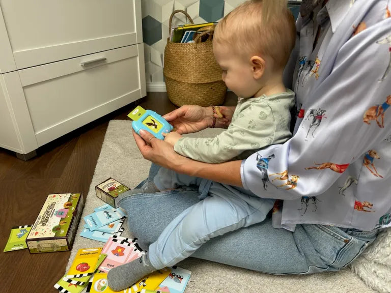 Când Gabriela și-a dat seama că fiul ei întâmpină dificultăți în a începe să vorbească, a început imediat să caute soluții. A încercat cărți, aplicații, jucării – dar niciuna nu a fost cu adevărat eficientă sau presupunea prea mult timp petrecut în fața ecranului. Lipsea ceva. Un instrument care să sprijine dezvoltarea vocabularului într-un mod natural, prin joc – și care să poată fi folosit activ de părinte împreună cu copilul.